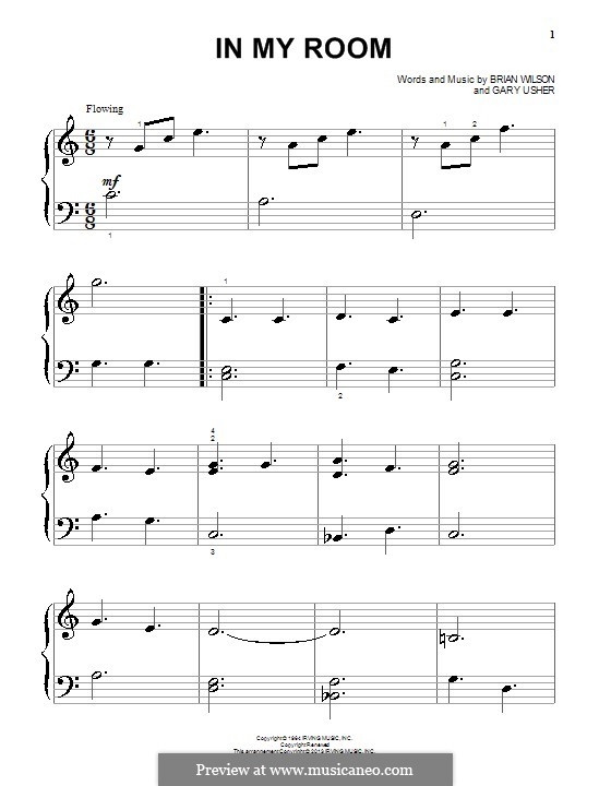 The Beach Boys In My Room Sheet Music Notes Chords Download Printable Big Note Piano Sku 95833